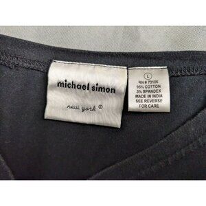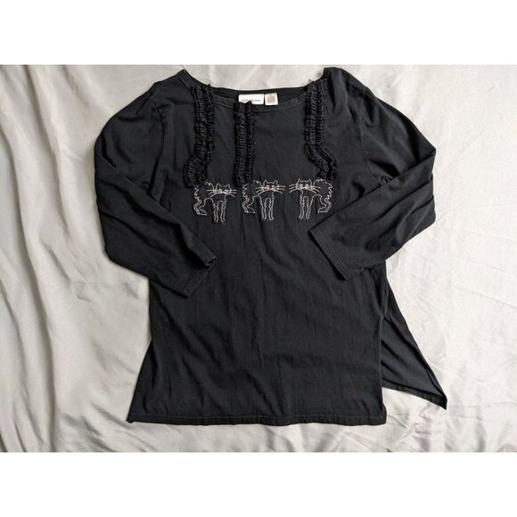 Vintage Michael Simon top Black Boat Neck Three Cats Ruffle Shirt Womens Size L