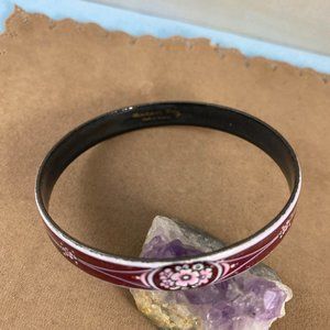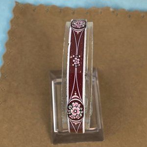 Hard to find in this color Vintage Michaela Frey with lots of Maroon, Pink, White, spring bouquet Floral Enamel Art Nouveau design Bangle Bracelet Marked inside Michaela Frey Made in Austria. It is thicker than most at 5/16" wide and the opening is for an average size wrist of 2.25". It is in wonderful condition. It is still perfectly round,