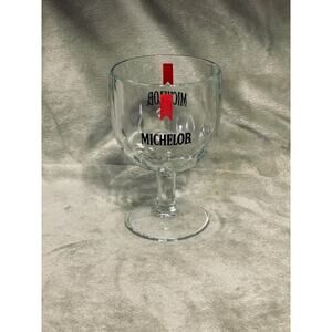 Vintage Michelob Glass 16oz Footed Goblet (1970s)- EXCELLENT. Goblet features double sided vintage Michelob logo in black with red ribbon accent, circular indentations along the curved part of the goblet, side seams in the glass. Measures 6 1/4" tall, 3 3/4" across rim of glass, & 3 1/8" across bottom footing. In excellent condition with no cracks, chips, breaks, or discolorations. A few very minor surface imperfections within the glass itself. Dishwasher safe top rack. Comes from a smoke free, pet free home.