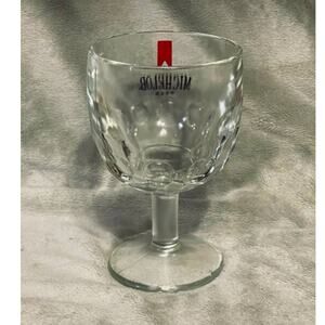Vintage Michelob Heavy Glass 16oz Footed Goblet (1970s)- EXCELLENT. Goblet features single sided vintage Michelob logo in black with red ribbon accent, circular indentations along the curved part of the goblet, side seams in the glass. Measures 6 1/4" tall, 3 3/4" across rim of glass, & 3 1/8" across bottom footing. In excellent condition with no cracks, chips, breaks, or discolorations. A few very minor surface imperfections within the glass itself. Dishwasher safe top rack. Comes from a smoke free, pet free home.