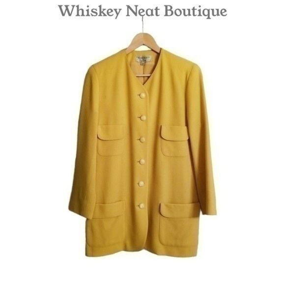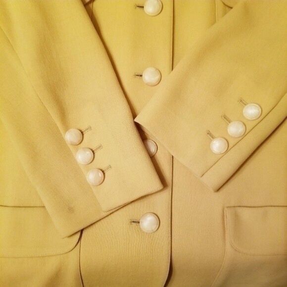 Fully lined, Shoulder pads, 4 slip pockets, Single breasted, Yellow button closures, Jacket, Blazer
