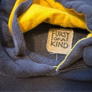 "Furst of a Kind" refers to a brand that specializes in reworked vintage clothing, and the hoodie shown in the image is a vintage University of Michigan sweatshirt that has stars added.