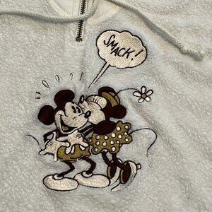 Vintage Mickey Inc Terry Cloth Sweater SZ Medium Cream 1/4 Zip Disney 90s