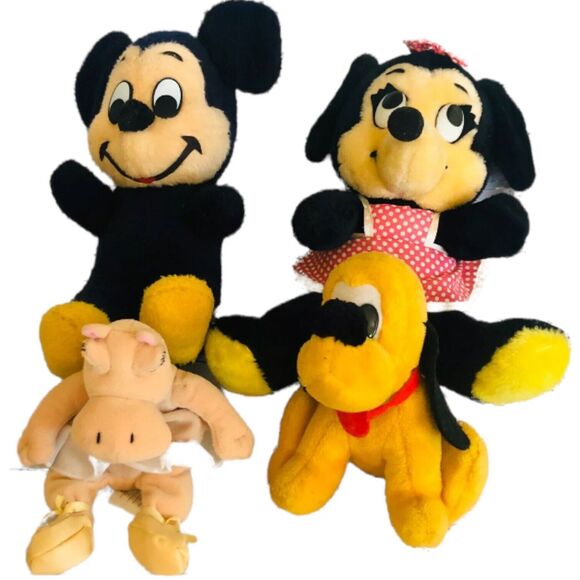 Vintage Mickey Minnie Hippo Pluto Walt Disney Characters Plush Toy Stuffed
