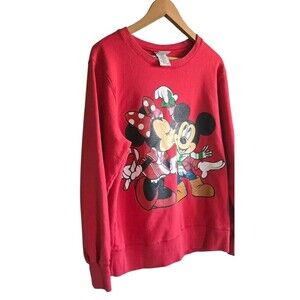 Vintage Mickey Minnie Mouse Sweatshirt Women's Medium Red Mistletoe Cotton