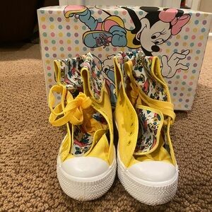 All Mickey & Minnie Mouse Converse Sneakers are extremely rare items that come from a downsized thrift shop. These items were made in the 1990s/early 2000s and are to be considered in good condition. Some items show small signs of wear but nothing too major. Some you can see storage wear which reflect the usually signs of vintage items stored for long periods of time. These are super cool items which are bound to draw attention with every wear!