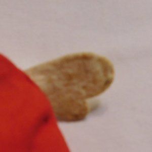 Measures approx. 6 1/2" tall x 7 1/4" wide. Red cloth material, hands are made of felt