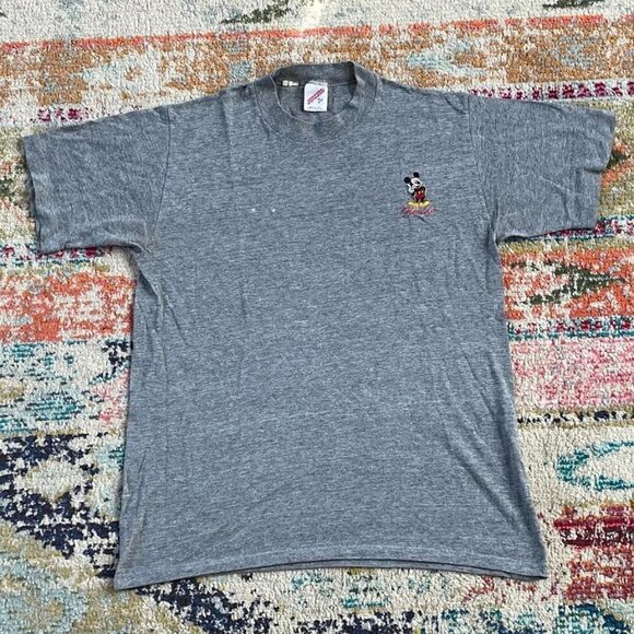 Vintage Mickey Mouse Cartoon Florida 1980s Gray Crewneck Disney World Tee Tshirt