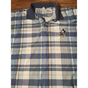 Vintage Mickey Mouse Flannel Polo Short Sleeve Men's Size XL Blue Yellow Golf