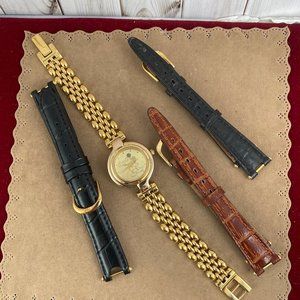 Vintage Mickey Mouse Gold Tone Watch with 3 Straps