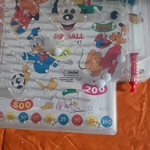 Pre-owned in good used condition. Vintage pinball game that features Mickey Mouse and Friends that is 15.5 inches long and 10 inches wide. Has a small crack which is featured.
