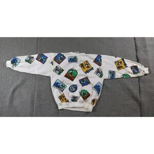 Vintage Mickey Mouse Sweatshirt L Kids All Overprint Vacation Graphic Print 80s