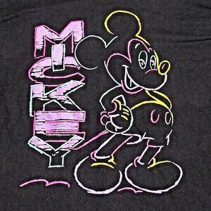 Vintage Mickey Mouse T Shirt Tee Black Neon Disney Designs Double Collar Medium