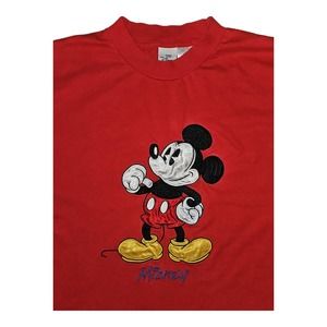 Vintage The Disney Store Mickey Mouse Unisex XL Red T-Shirt. Mickey Mouse Embroidered on Front. Must have for the collection.