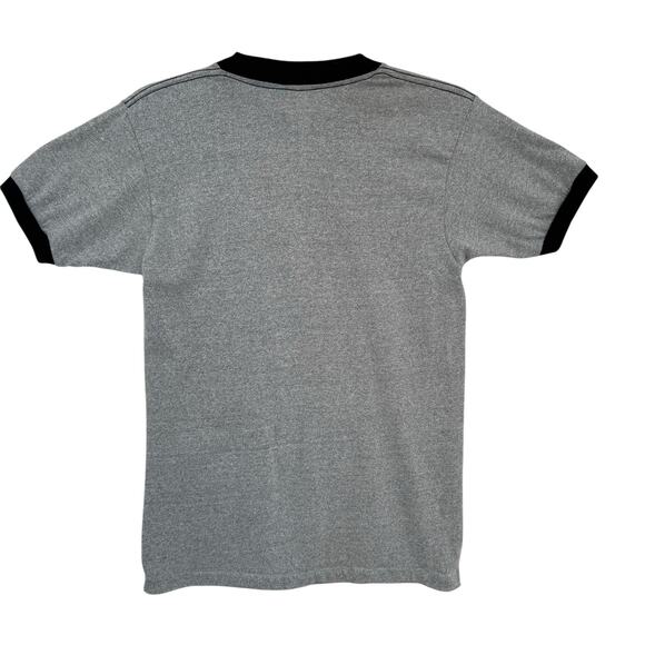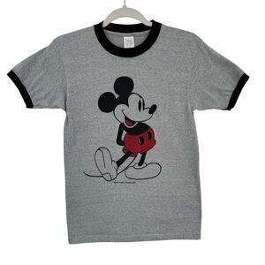 Vintage Tropix Togs Mickey Mouse Medium Gray Single Stitch Ringer Shirt Made in USA Disney Summer Spring Retro