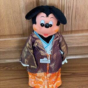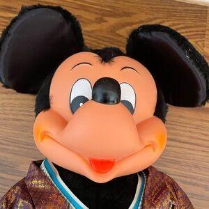 This is a vintage Japan Disneyland Mickey Mouse kimono clad plush stuffed animal.