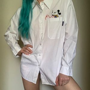 Lovely vintage Mickey Mouse white collar button up top. Perfect unisex piece. Mickey is embroidered right above the pocket.