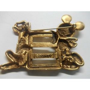 Vintage Mickey & Pluto Goldtone Pin Frame Brooch Clasp Disney Pin. The center is were you can insert a photograph. Measures approx. 2 1/4" wide and 2 3/4" high. { highest figure}