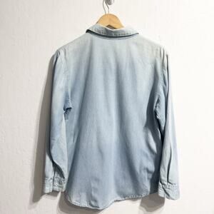 Vintage Mickey Womens Small Unlimited Button Down Denim Shirt Disney Jerry Leigh Flowers Blue 80's 90's Chambray
