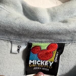 Vintage Mickey Small Button Down Denim Shirt Disney Jerry Leigh Flowers Blue