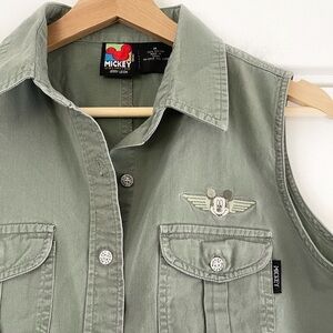 In like-new vintage condition. No flaws! Cutest embroidered Airforce Mickey Motif. Chest pockets. 100% Cotton. Botton Front.