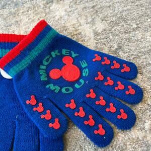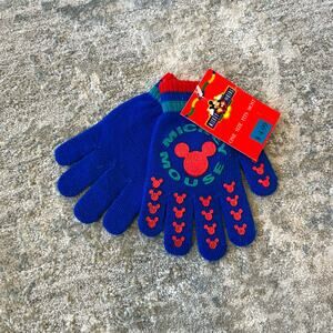 Vintage Mickey for Kids Blue Gloves. Dead stock, brand new with tag (NWT). One size fits most; see photo for measurement. Cozy gloves are perfect for chilly fall and winter days. Blue with green and red Mickey Mouse grippers on the fingers and palms.