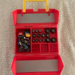 Vintage Micro Machines Toolbox with Mini Cars Motorcycle Airplane and Wheels