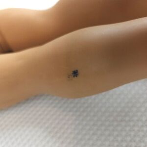 There is a pen mark on the side of one leg, I have not tried to remove it, and her torso has what appears to be a rust mark.
