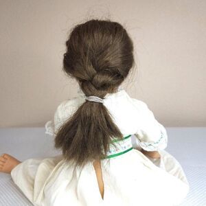 Hair is original, and a little messy, but no missing plugs or cut pieces noted, thick blunt bangs.
