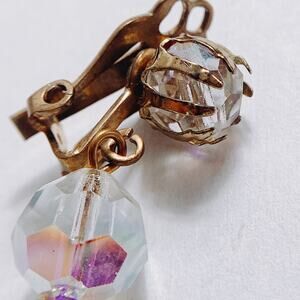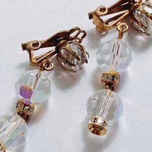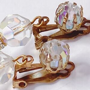 A cascade of aurora borealis crystals brings vintage shimmer to these mid-century clip-ons, catching the light with every movement. Their faceted beads and rhinestone rondelles add effortless sparkle to evening or bridal looks.