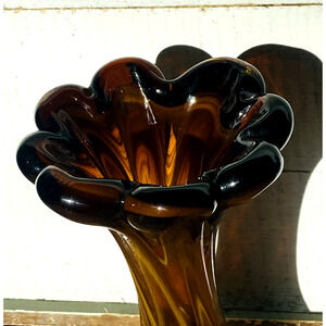 Vintage Mid Century Amber Slag Glass Vase 6.25" Tall