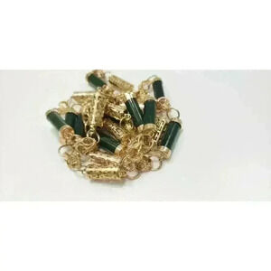 Vintage Mid-Century Circa 1960 Constructed of a Gold Micron Finish over Base Metal(Anti-Tarnish) with Tubular-shaped Polished pieces of Genuine Earth-Mined Natural Jade alternating with 'Greek-Key' style Filigree section.