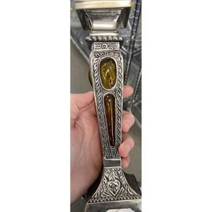 Vintage Mid Century Baroque Style Amber and Silver Tone Candlesticks Taper Set 2