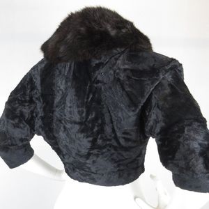 Vintage Mid Century Black Velvet / Fox Fur Bolero