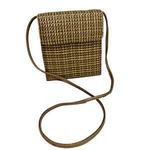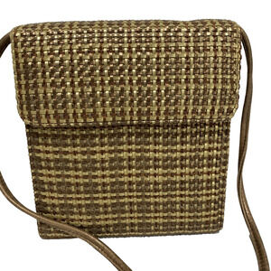 Vintage Mid Century Box Style Purse Shoulder Bag Brown Gold Woven Elegant Chic