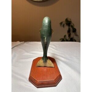 This vintage solid brass dolphins sculpture statue is a magnificent piece of nautical decor for any space. Standing at a height of 7 inches, this dolphin figurine is made of durable a brass material. With its intricate design and nautical theme, this statue is sure to be a conversation starter and a unique addition to any collection of metalware or collectibles.