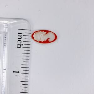 Features: Finely carved silhouette; translucent orange-pink shell base; lightweight and thin; ideal for setting in a ring or small brooch