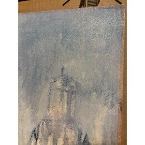 Vintage Mid Century City Street Scene Painting 1950’s Urban Skyline Signed 12x36