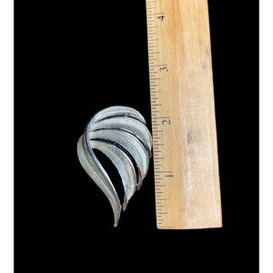 Vintage Mid Century Crown Trifari Silver Tone Feather Brooch