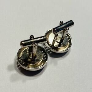 Vintage Mid Century Cufflinks done in silver tone metal settings with dark green center stones. These are a classic look - conservative rounds with a pierced geometric design. No hallmarks but nice quality fashion jewelry perfect for your favorite man! Gently worn - no flaws.