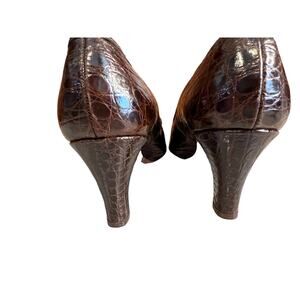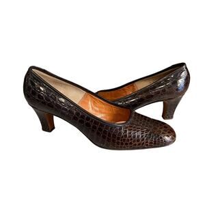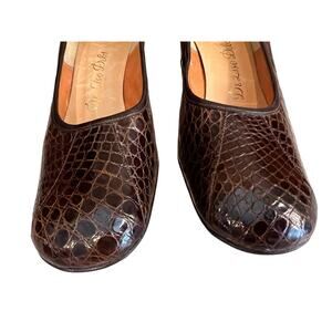 Vintage Mid Century Deliso Debs Dark Brown Leather Snake Embossed Pumps Heels