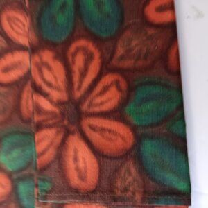 Vintage Mid Century Fabric Napkins Flowers Red Orange Brown Green