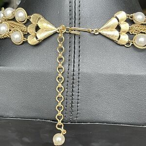Vintage Mid Century Faux Pearl Gold Tone Layered Chain Necklace 15-17” Adjustabl