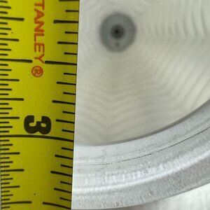 Measures approx. 14"H with finial x 4"W outer rim opening, and a 3" inside diameter neck.
