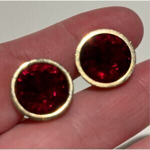 Vintage Mid Century Gold Cufflinks Red Tivoli Style Stones Signed West Germany