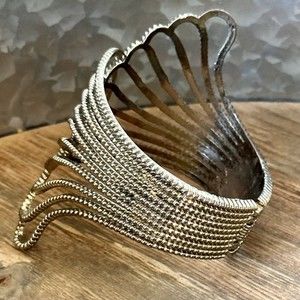 Vintage Mid Century Gold Plated Custom Spring Cuff Bracelet 4” Long