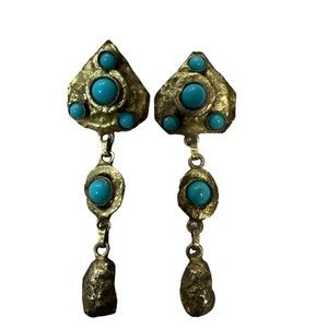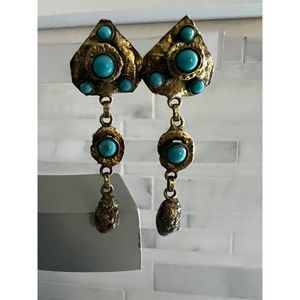 Vintage Mid Century HENRY PERICHON Earrings Faux Turquoise Gilt Bronze Rare