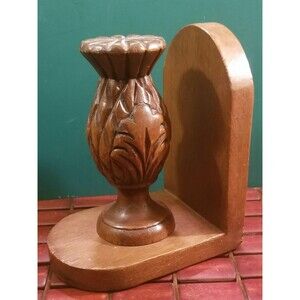 Vintage Mid Century Hand Carved Wood Pineapple Bookend 7"x6"x4"