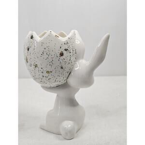 Vintage Mid Century Hand Painted Porcelain Bunny Holding Egg Easter Spring Art