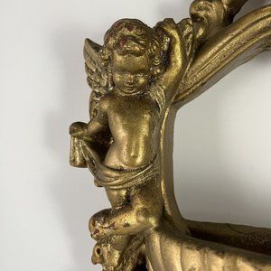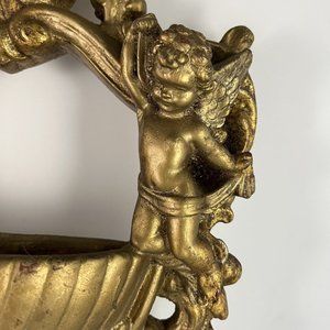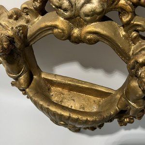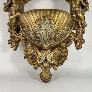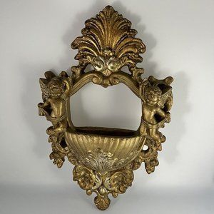 Vintage Mid Century MCM Gold Cherub Plaster Ceramic Wall Pocket Italian Regency.